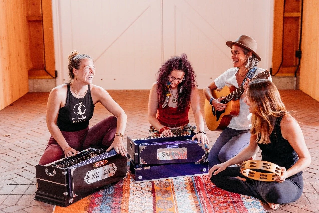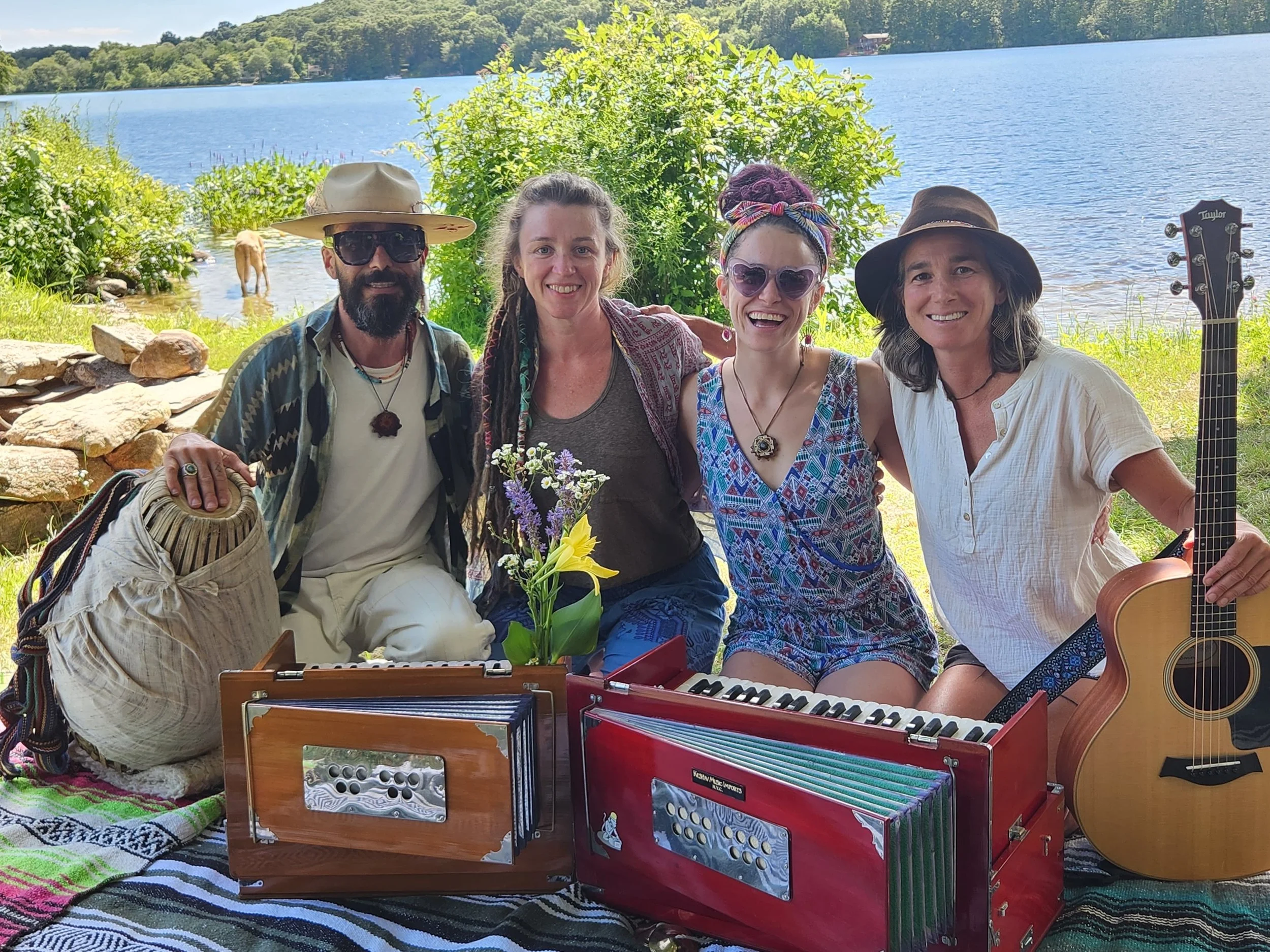 Omies is a Bhakti band featuring Megan Mulrine, Justine Wheeler, Kevin Gallagher (not pictured here) and myself, Rebecca Pepitone.